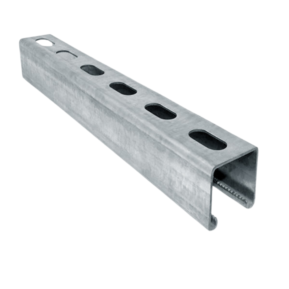The 3.5M Galvanized Solar Mounting Rail is designed for secure and efficient solar panel installations. Made from durable galvanized steel, this slotted P2000 rail offers reliable support while maintaining a lightweight form factor for ease of handling and installation.