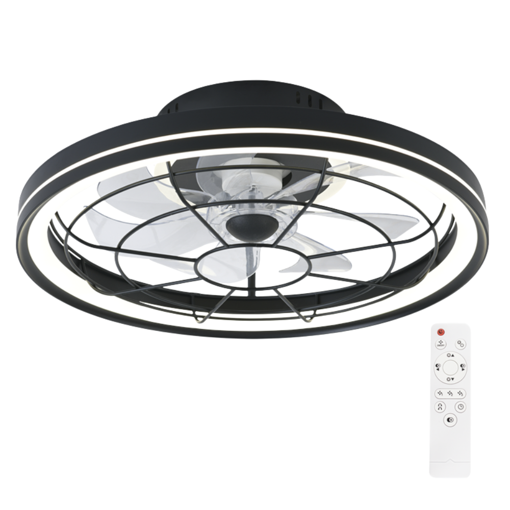 This low-profile ceiling fan offers a sleek, modern solution for cooling and lighting smaller spaces. Built from durable plastic, it features a highly efficient 15W copper coil DC motor and an integrated 38W LED light. The fan is operated via remote control and offers adjustable lighting with full dimming and a range of colour temperatures to suit any mood or setting.