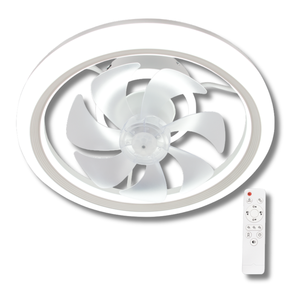Designed for compact spaces, this modern ceiling fan combines efficient air movement with versatile lighting. Its sleek plastic construction houses a powerful 20W copper coil DC motor, ensuring quiet, reliable operation. The integrated 38W LED light offers customisable brightness with 3 CCT colour temperatures and full dimming capability. A compact and stylish solution ideal for contemporary interiors.