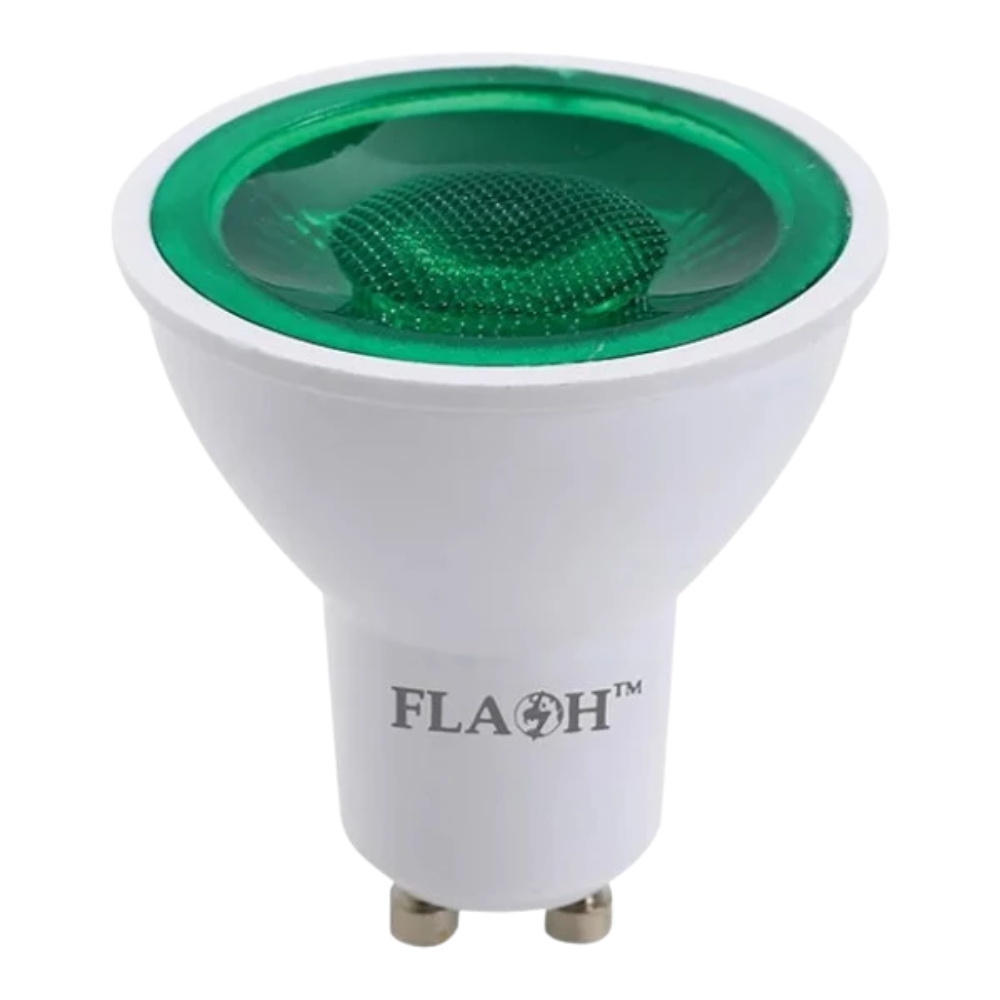 The Flash 6W GU10 Green LED Lamp delivers bright green light ideal for enhancing ambiance, accentuating spaces, or adding decorative flair. Its energy-saving LED design combined with a GU10 base ensures effortless installation, durability, and minimal energy use. Perfect for celebrations, holiday decorations, theatrical setups, or showcasing architectural details.