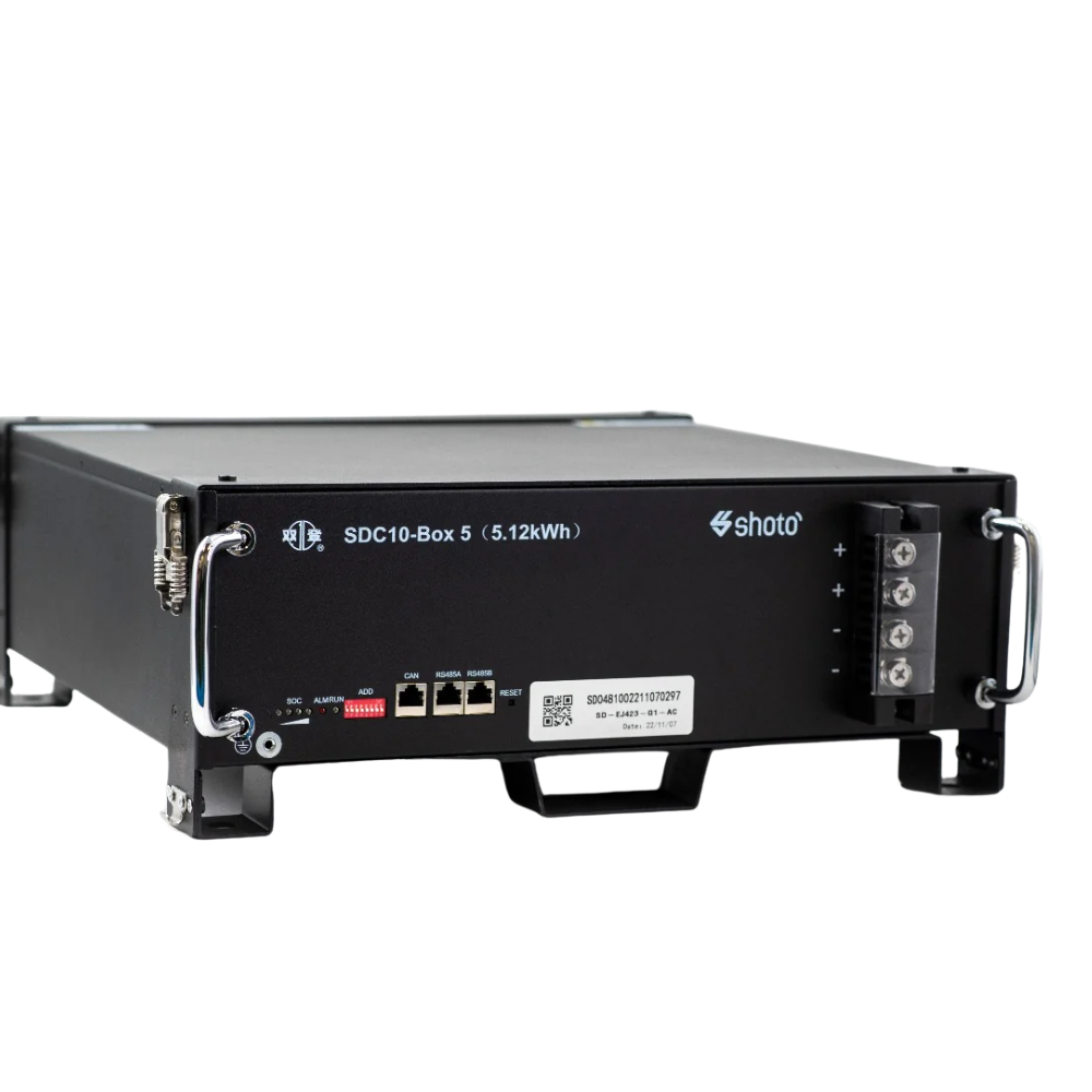 The Shoto 5.12kWh Lithium-Ion Battery (Model 51.2-100) is a high-performance energy storage solution designed for residential and commercial solar systems. Built with a rack-mounted structure to streamline installation and minimize costs, it delivers over 5000 cycles at 90% Depth of Discharge, ensuring long-term durability and efficiency. It’s compatible with leading inverter brands, making it a versatile choice for scalable solar setups.
